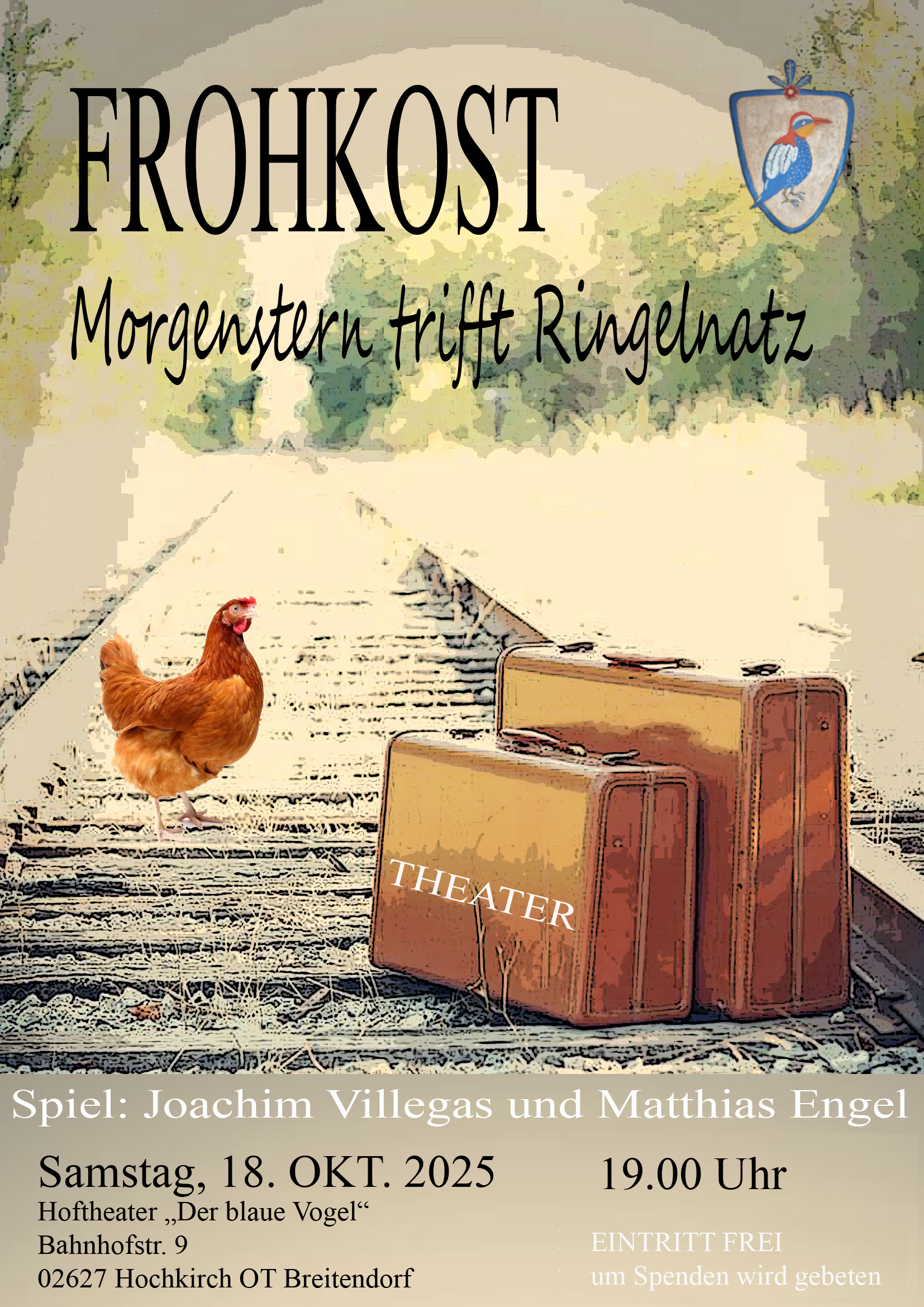 Das ist der Beginn einer Geschichte von Joachim Ringelnatz. An diesem Abend treffen sich genau dort im Nirgendwo zwei Dichter die sich im Leben nie begegneten. Und doch sind ihre Verse, ihre Erzählungen und Texte verwandt, als wären sie Brüder, sie sind tiefsinnig, witzig, skandalös, sensibel und musikalisch.